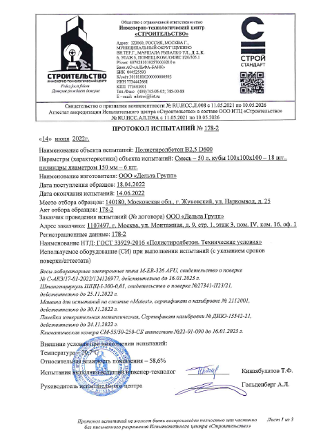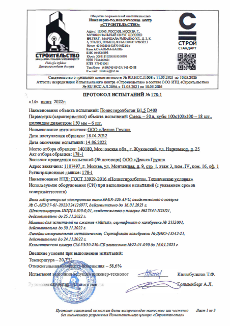 Протоколы испытаний нашего полистиролбетона: